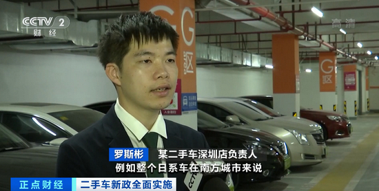 某二手车深圳店负责人 罗斯彬:例如日系车在南方城市整体价格会相对比较高,但在北方日系车整个市场上的价格会低一点。实行异地转籍之后客户可以选择北方的车辆,直接运输到南方来。深圳本地车辆交付的话之前是占到70%,异地是30%。现在整体下来的话,我们整体的异地车辆交付占到了70%。
