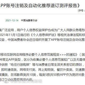 中消协:淘宝、腾讯视频等20款APP存在注销账号问题,曹操出行、支付宝等5款APP自动化推荐退订存在问题
