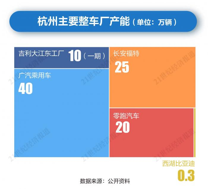 除此之外,国内新能源汽车的龙头企业——比亚迪在杭州也有产能布局,不过规模不大,主要产品也不是乘用车,而是专用车和客车——西湖比亚迪致力于纯电动环卫车辆和邮政及物流车辆的研发、制造与销售,一期规划产能3000辆。