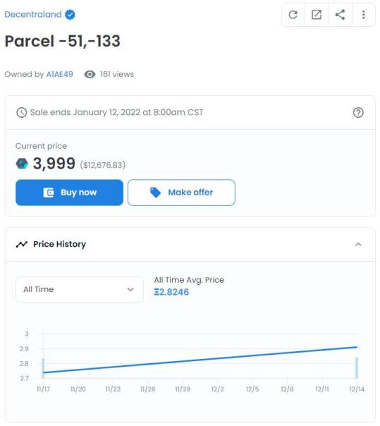 中新经纬12月16日电 (杨京川)2.7万元/平,单件价值超千万!这并非是国内一线城市的房价,而仅是存在于网络世界的“土地”。