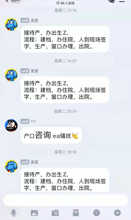 12月15日,上官正义所卧底的群里,依然有人在发可以办出生证,办户口的信息
