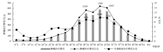 中国肿瘤治疗费用的年龄分布