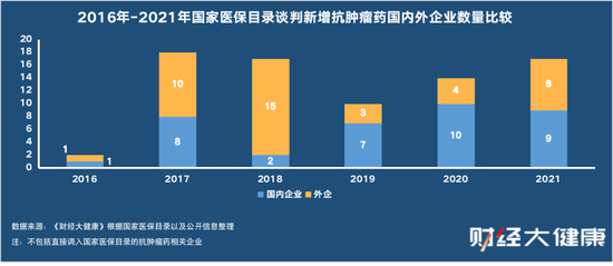 《财经∙大健康》统计,自2016年启用国家药品谈判机制以来,国家医保目录累计新增抗肿瘤药97个。其中,85个西药和12个中药。