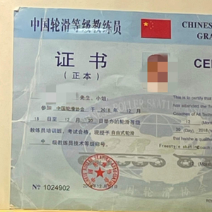 南三环附近一家商场内,一处少儿轮滑培训机构即在入口处的显著位置摆放了多名教练所持证书。应记者要求,工作人员将证书拿下来进一步展示。这些证书均为浅蓝色,有中英双语内容。统一名称为“中国轮滑等级教练员”,下面是持证人的名字、照片以及教练员等级,发证机构是“中国轮滑协会”。据官方资料,该协会是具有独立法人资格的非营利性全国体育社会团体。因此教练们的证书应为六类证书中的第三类,“全国性单项体育协会颁发的体育技能等级证书”。