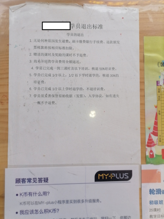除此之外,不少机构的退费标准也让不少家长觉得不好接受,“条件都特别苛刻。”比如一家教跳绳的培训机构,就提前注明“丢失原始协议不退费”、只要上了三次课就只能退回最多一半的培训费,而上了一半课之后,就完全不退费。