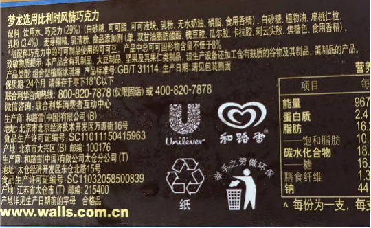 但在今年夏天,这款一代人眼中的“白月光”产品翻了车:梦龙冰淇淋中外用料双标。其国内版巧克力层里面的冰淇淋中含有大比例的植物油脂,而在欧洲市场销售的冰淇淋产品却是使用牛奶为主要原料制作的。