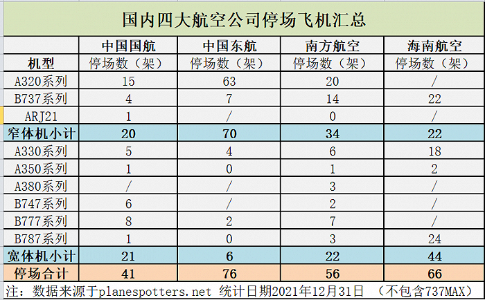 具体到国内航空市场,由于疫情态势多变,航空公司停场飞机数量也在起伏波动。据业内媒体2020年10月底统计,国航、东航、南航、海航四家航空公司合计停飞162架飞机。