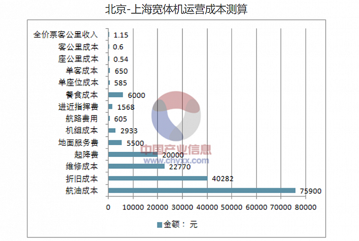 据智研咨询旗下中国产业信息网发布的2018年中国航空运营成本测算,以北京-上海黄金航线为例,若采取宽体机运营,航油成本约为7.5万元、折旧成本约4万元、起降费2万元、地面服务费5500元等,综合成本接近18万元。
