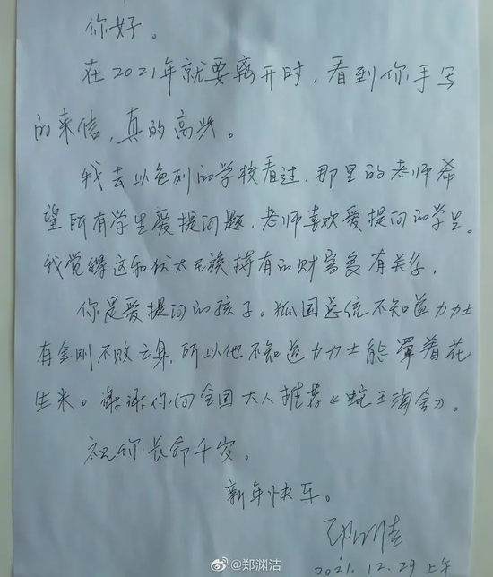 听了这话,郑渊洁连连点头,在鼓励的同时还将工作一事作为承诺签在了书上。