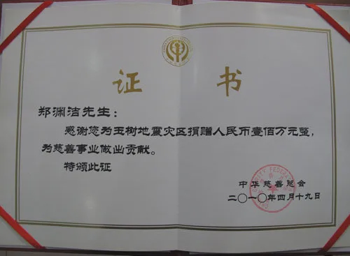 “汶川地震时,郑亚旗让我捐款,因为他觉得爸爸是童话大王,应该做点什么。所以我把当年用《皮皮鲁总动员》赚来的38万全捐了,是当时捐款最多的中国作家;后来玉树地震,郑亚旗也劝我捐款,我又捐了100万,然后他就送了我一辆跑车,那是他自己赚钱买的。”