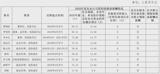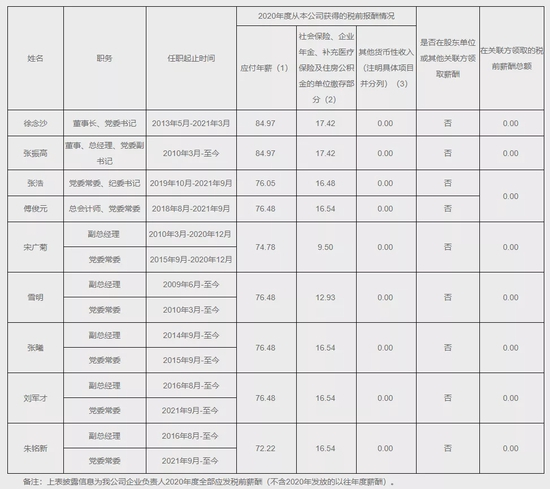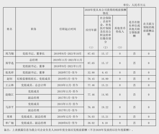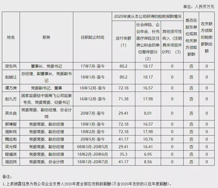 注:如有中央企业一把手在2020年内发生人事变更,该表优先选取2020年内在职时间较长人员。如需了解各中央企业所有负责人2020年度薪酬情况请在下方查看。