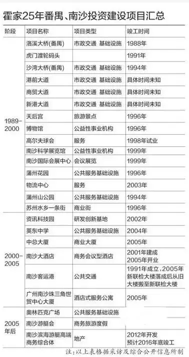 从结果看,霍家在南沙湾打造了不少基建项目、公共设施、商业项目,该片区也是整个南沙最早进行开发的片区。霍英东先是与政府合资建造洛溪大桥、沙湾大桥、港前大道、进港大道等公共交通,后又投资建成了南沙客运港、南沙天后、南沙游艇会、南沙资讯科技园、南沙大酒店、南沙物流中心、珠三角世贸大厦、香港中华总商会大厦、英东中学等项目。