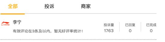 截止发稿前,黑猫投诉上,李宁有效投诉为1763单,完全0回复。且李宁退货难为题并不是近期事件,早期2020年,就有类似的投诉。