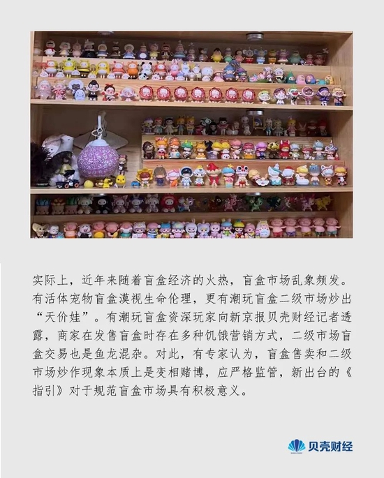 针对上述商家营销行为和二级市场乱象,今年1月14日,上海市市场监督管理局印发《上海市盲盒经营活动合规指引》,明确指引适用范围,为上海市盲盒经营活动划出了红线,同时提出盲盒经营建议。