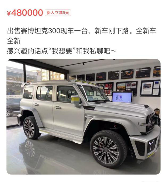 在某二手市场平台,售价30.8万元的赛博朋克版本的坦克300报价32.8万-40万元不等,最高标价48万元;一个赛博朋克版本的订单在二手市场上售价5000元-50000元。