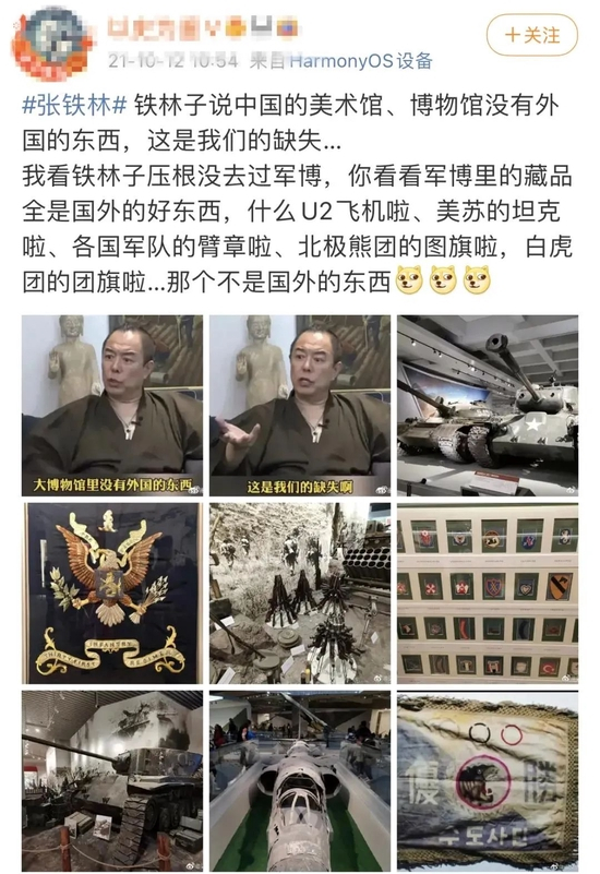 还有军迷调侃他走错博物馆,不如去中国的各种军博馆,那可全是外国的“好东西”,“像什么U2飞机啦、美苏的坦克啦、各国军队的臂章啦、北极熊团的图旗啦,白虎团的团旗啦……”