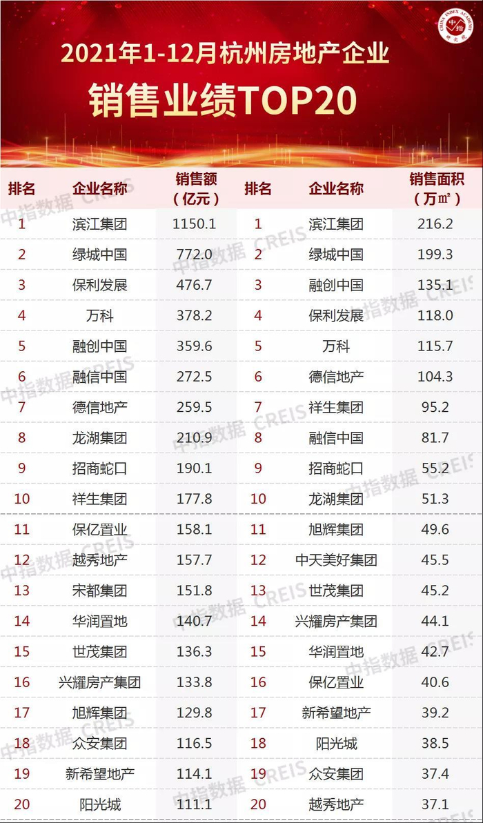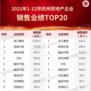 2021年区域房企盘点·杭州|本土房企业绩霸榜前两位,外来企业形成合围之势