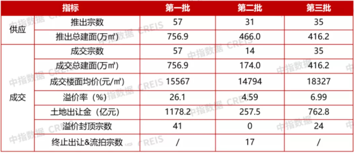 由于杭州第一批次集中拍地空前火热,第二批次土拍政策提高了房企参拍门槛,如取消勾地制度、禁马甲、提高房企资金资质审核等,同时增加了地块的建设要求,如竞品质、建沿街商铺,禁商墅等,这也导致二批次集中拍地成交惨淡。第三批次集中土拍规则适度放松,主要从让利房企、降低门槛等提高房企参拍积极性方面调整,包括恢复勾地制度、降低溢价上限、不限参拍资质要求,竞品质改为定品质等。
