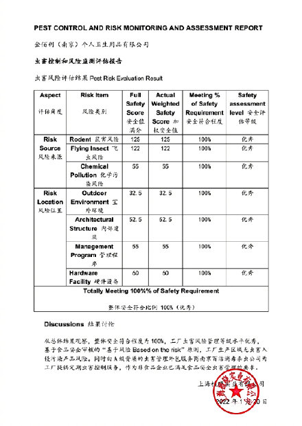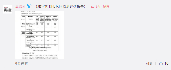 - 为确保产品品质,杜绝潜在问题,小高也开启了自查,委托了国家一级资质的具有害虫生物防治评估服务的专业机构,对工厂进行现场评估。评估得到的结论为“工厂整体安全符合程度为100%,企业所有区域的虫害控制由各部门直接监管,并且由A级资质的虫害管理外包服务商负责。作为非食品企业,已满足食品安全虫害管理的要求。”(报告详见评论区)