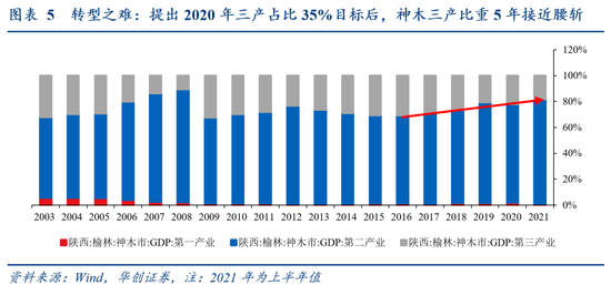 展望2022,神木财政仍然“听煤由命”,而动力煤价格自2021年10月来连续下跌,已为今年的神木财政蒙上阴。神木也曾尝试过摆脱煤炭依赖,但适得其反:《2016神木县人民政府工作报告》中就曾提到:“到2020年,第三产业增加值占GDP比重达到35%”;但五年过去了,神木的三产占比反由31%降至2021年上半年的18%,可见其转型之难。“上顿吃饱愁下顿”也仍是诸多资源财政县的缩影。