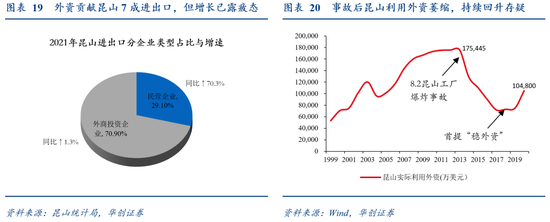 外资存疑,指今年外贸稳增长压力下,昆山实际利用外资回升或受限。外资、尤其是台资企业虽一直是昆山经济的重要引擎,但自20148.2昆山工厂爆炸事故后(工厂隶属中荣金属制品有限公司,为台商独资),昆山实际利用外资5年缩水近6成,20187月中央政治局会议提出“稳外资”后才见起色,持续回升存疑。