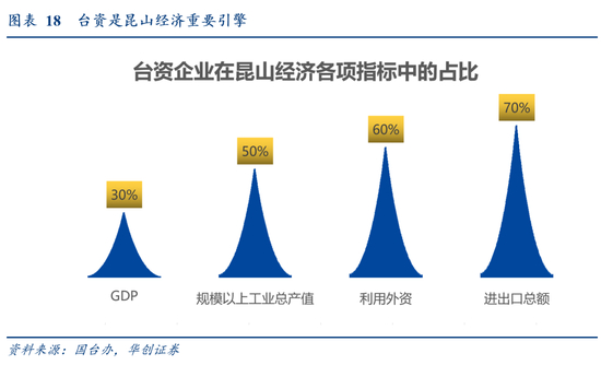外资护航,主要是昆山外资、尤其是台资基本盘仍有韧性。稳外资、稳台资对昆山有多重要?国台办发言人2020年底曾披露“昆山全市生产总值的30%、工业总产值的50%、利用外资的60%、进出口总额的70%以上,都来自台企的贡献”。
