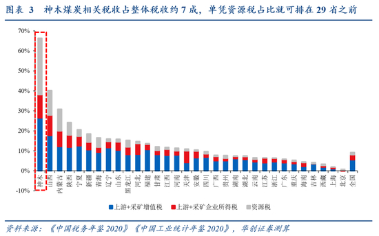 神木财政对煤炭有多依赖?相关税收占比整体税收约7成:我们将资源税、上游+采矿业增值税、上游+采矿业企业所得税三项占比加总测算大宗税收占比,神木单凭资源税占比就可排在29省之前(占比28%,全国平均1%)。