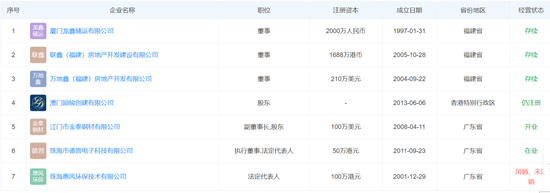 天眼查App显示,陈荣炼除了在澳门励骏创建有限公司担任联席主席兼行政总裁、执行董事外,在内地还关联6家公司,其中5家为存续或在业状态。同时,陈荣炼还担任珠海市德晋电子科技有限公司法定代表人,该公司系德晋集团有限公司全资子公司,目前德晋集团有限公司已告解散。