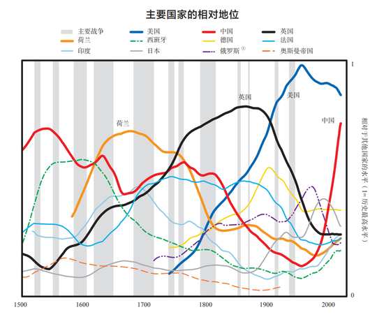 上述结果是桥水投资公司创始人瑞·达利欧在其新著《原则——应对变化中的世界秩序》中发布的。达利欧前几年也出过一本《原则》,谈的是生活和工作的原则。这本《原则2》关注的则是世界的运行规律和规则。作者研究了过去500年间世界财富和权力的重大变化,试图从中找出变化的典型模式、规律、周期和因果关系,并由此为基础推断未来。