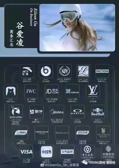 2019年开始,谷爱凌成为品牌借力冬奥会营销的“新宠”。