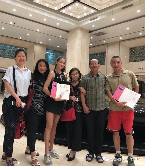 谷爱凌与妈妈、姥姥(右三)和舅舅(右一)与卢建(右二)合影