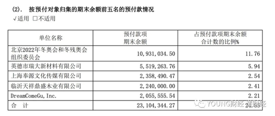 某品牌半年财报中显示支付给谷爱凌代言费用的“预付款项期末余额”的收款方为DreamComeGu,Inc.
