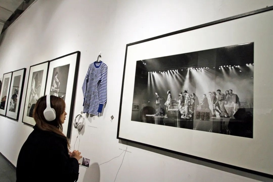 2017年12月18日,“把青春唱完——高原镜头下的中国摇滚时代”摄影展在天津智慧山艺术中心开展。最右一幅照片记录了1994年12月17日,香港红磡演唱会演出结束后,演出者集体致谢后离场。图/中新