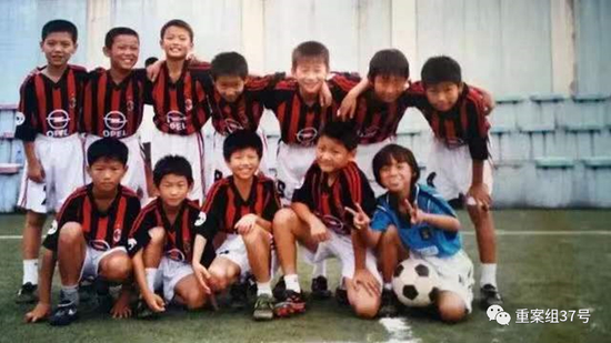 ▲少年时期的王霜(前排右一)在江汉大学的足球场上与男孩竞技。受访者供图