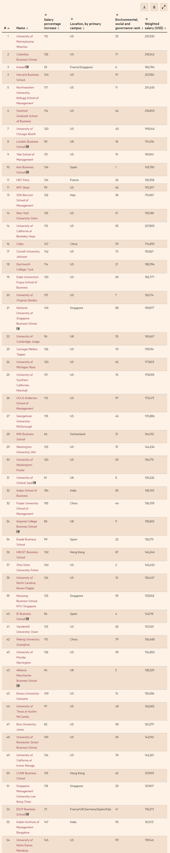 07. 2022年FT全球MBA排名榜