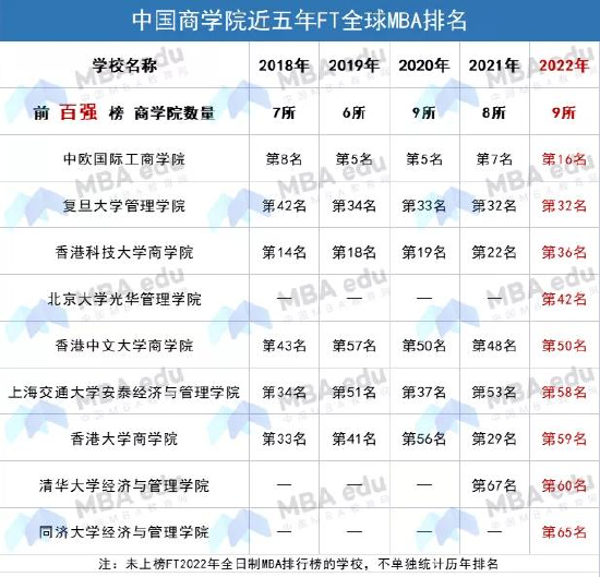 2022FT全球MBA排名揭晓 中国9所院校跻身世界百强