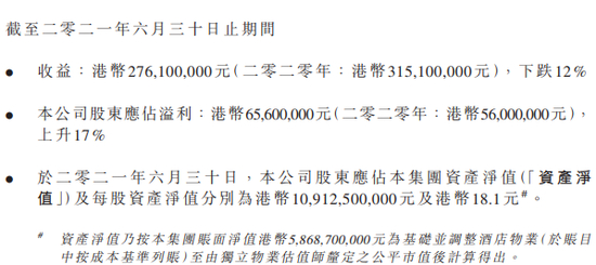 据爪哇控股对外披露的信息,其实际控制人为吕荣梓和吕联朴,双方共同持有爪哇控股2.6亿股份,占总股份比例为40.52%。爪哇控股2021年中报显示,2021年上半年实现收益2.76亿港元,下跌12%;股东应占溢利约0.66亿港元,上升17%。其在香港持有的酒店大厦和投资物业,包括寿臣山道东1号、香港铜锣湾皇冠假日酒店、维港汇和华威大厦。