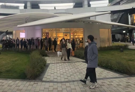 2月13日下午,前滩太古里路易·威登临时店铺门前排起的长队,绕了这个花朵形建筑半圈。“明天就是情人节了,想来想去还是送个包实惠。”28岁的市民历先生和妻子排在队伍中,准备买一款价格约2万元的包。
