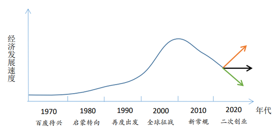 从1970年代末的“百废待兴”,到1980年代的“启蒙转向”,1990年代的“再度出发”,2000年之后的“全球征战”,再到2008年之后的“新常规”、“供给侧改革”,中国经济走出了一个S型曲线,目前属于高位的平台整理期、重构期、“二次创业”期,理想情况是再起一条“第二曲线”,进入一个更优的发展状态,也就是可持续发展、高质量发展,如果不理想的话,则可能陷入人们常说的“中等收入陷阱”。