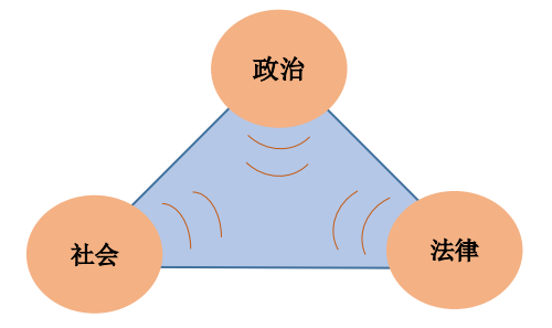 我们不妨考虑一个由法律、社会和政治三者构成的“三角”框架。每一个都会以自己独特的方式发出信号,就法律来说是各种法律条文及判例(如对张文中、顾雏军、兰世立等企业家的法律判决),社会基于文化传统、道德观念等而形成社会舆论,道德评价,政治则是通过政府领导人的讲话、指示、文件等,这些信号相互交织互动,就形成了关于企业家的一系列评判(如图2所示)。