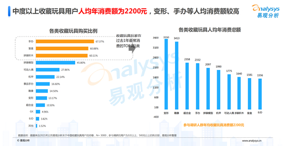 3月1日,易观分析发布《中国收藏玩具行业市场洞察报告2021》显示,截至2025年,国内收藏玩具行业的市场规模将突破1500亿元,核心消费群体将突破1亿人,中国收藏玩具市场整体增速高达35%,相比潮流玩具市场更具发展潜力。