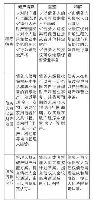 在《深圳经济特区个人破产条例》中,共提供了清算、重整与和解三类程序,供不同情况的债务人适用。