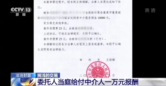 经过沟通,双方最终达成调解协议,张女士当庭给付中介王先生报酬10000元,双方再无其他争执。