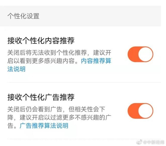 淘宝微信抖音上线算法关闭键 用户可自行关闭个性化推荐