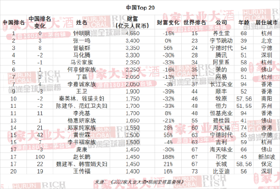 - 落榜者包括教育行业好未来的张邦鑫(去年财富1,000亿元),跟谁学的陈向东(去年财富750亿元)。