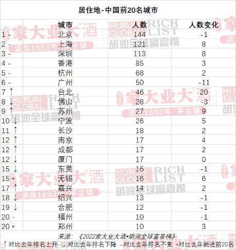 广州减少11人,至50人,与巴黎并列第12名。落榜的广州企业家包括:奥园的郭梓文、太阳城的廖榕就、唯品会的沈亚和完美日记的黄锦峰等。