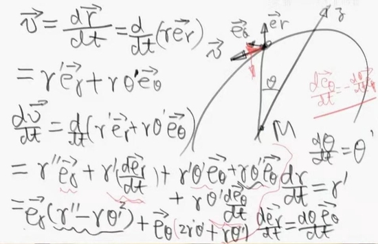 在地球引力下,卫星是如何运行的?张朝阳继续进行推演。首先,他引入了极坐标,并作如下推导: