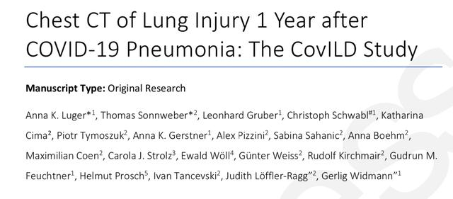 来自奥地利的研究团队在关于COVID-19肺炎的这项最新研究中提到,尽管他们的队列随访时间较短,但观察到的与之前的这些发现一致,表明COVID-19后CT异常持续,但随后较为稳定。