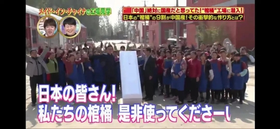 据中国新闻社援引节目内容,节目组来到山东省菏泽市,并且给出了一组数据:日本市场上9成的棺材,都是在这个地方生产制造出来的。也就是说,平均每死去10个日本人,或有9个会躺在菏泽市棺材生产商出口的棺材中长眠。