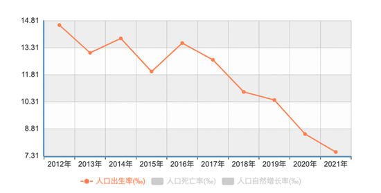 2012年-2021年,我国人口出生率变化曲线。数据来自国家统计局